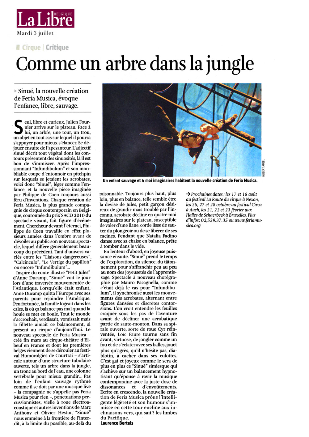 La Libre Belgique, 3 juillet 2012“Le festival de la Route du Cirque”